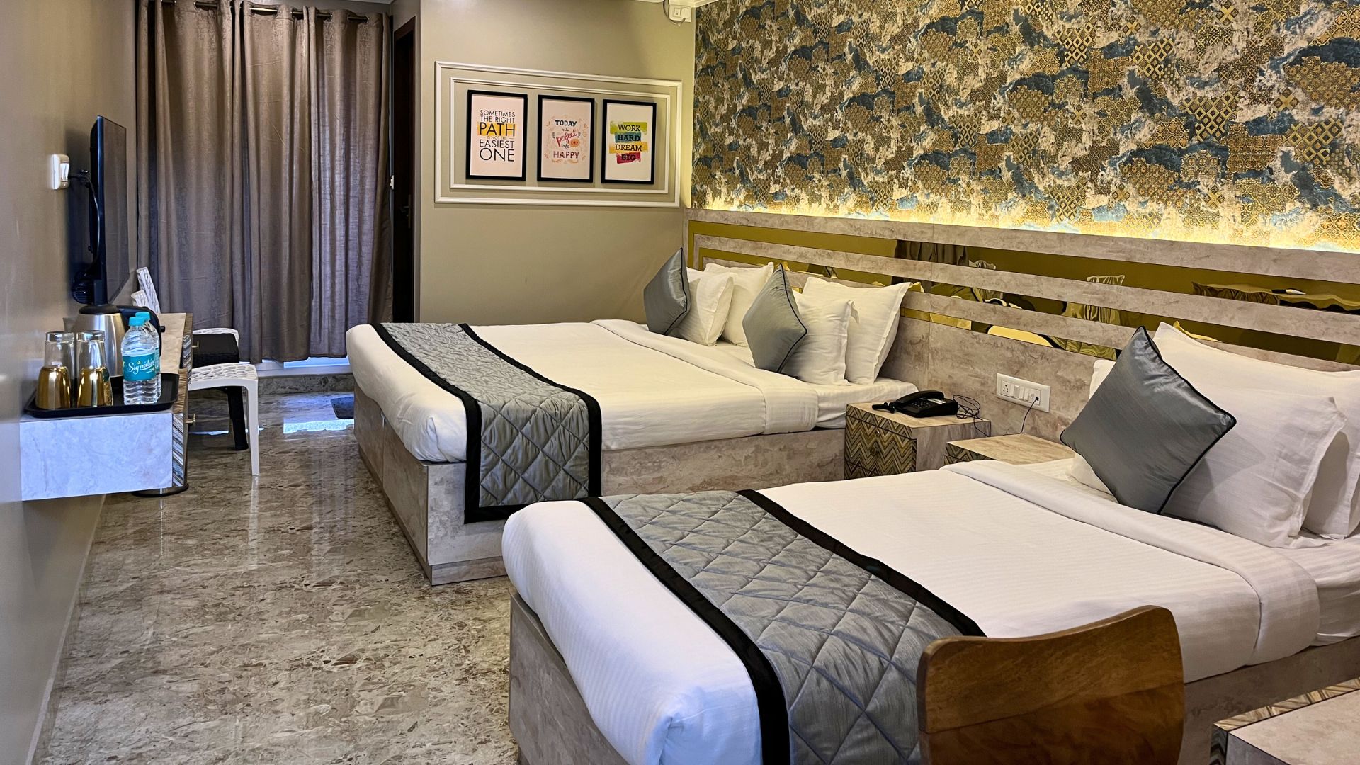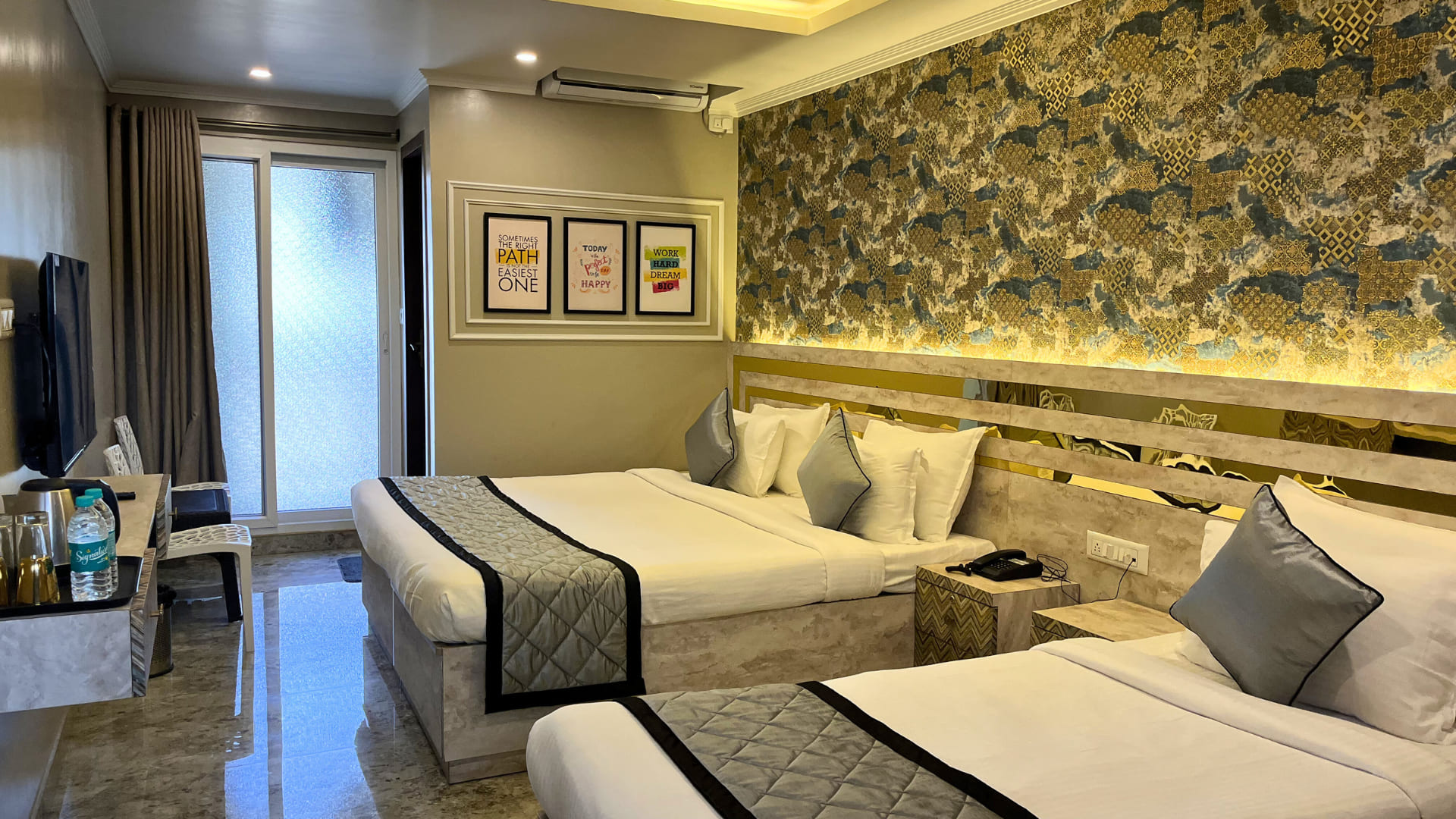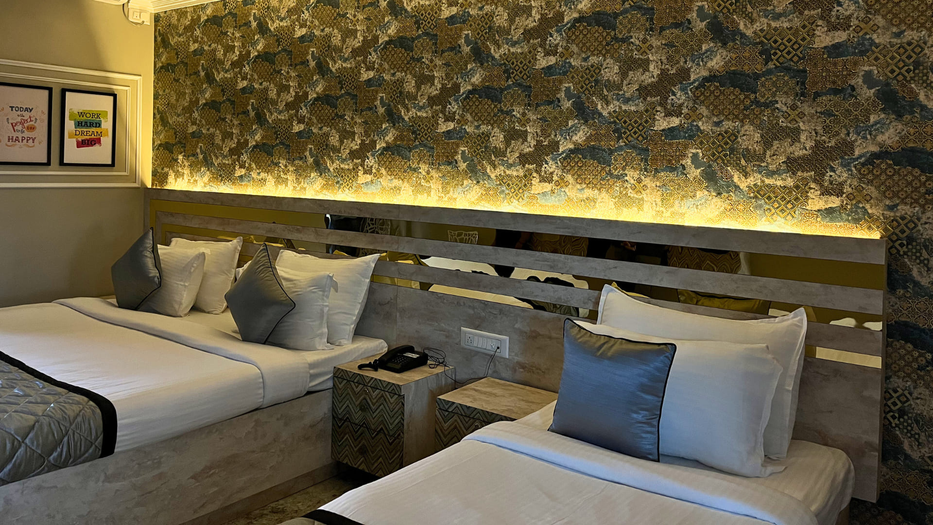 Indulge in comfort with our Premium Double Deluxe Room, featuring two double beds and elegant finishes. Enjoy a private balcony, mini-fridge, and coffee maker — perfect for couples or small families.